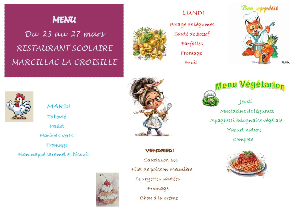Menu restaurant scolaire du 23 au 27 mars 2026 Soumis par marcillac le ven, 20/03/2026 - 10:48 Lire la suite de Menu restaurant scolaire du 23 au 27 mars 2026 Blog de marcillac