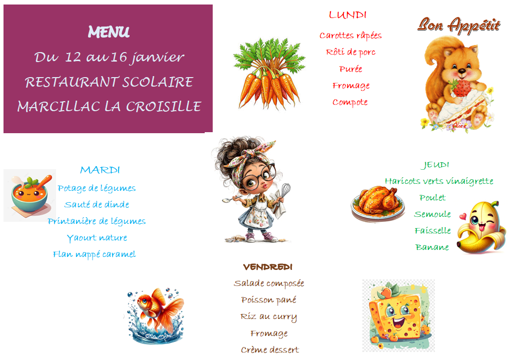 Restaurant scolaire du 12 au 16 janvier Soumis par marcillac le ven, 09/01/2026 - 12:17 Lire la suite de Restaurant scolaire du 12 au 16 janvier